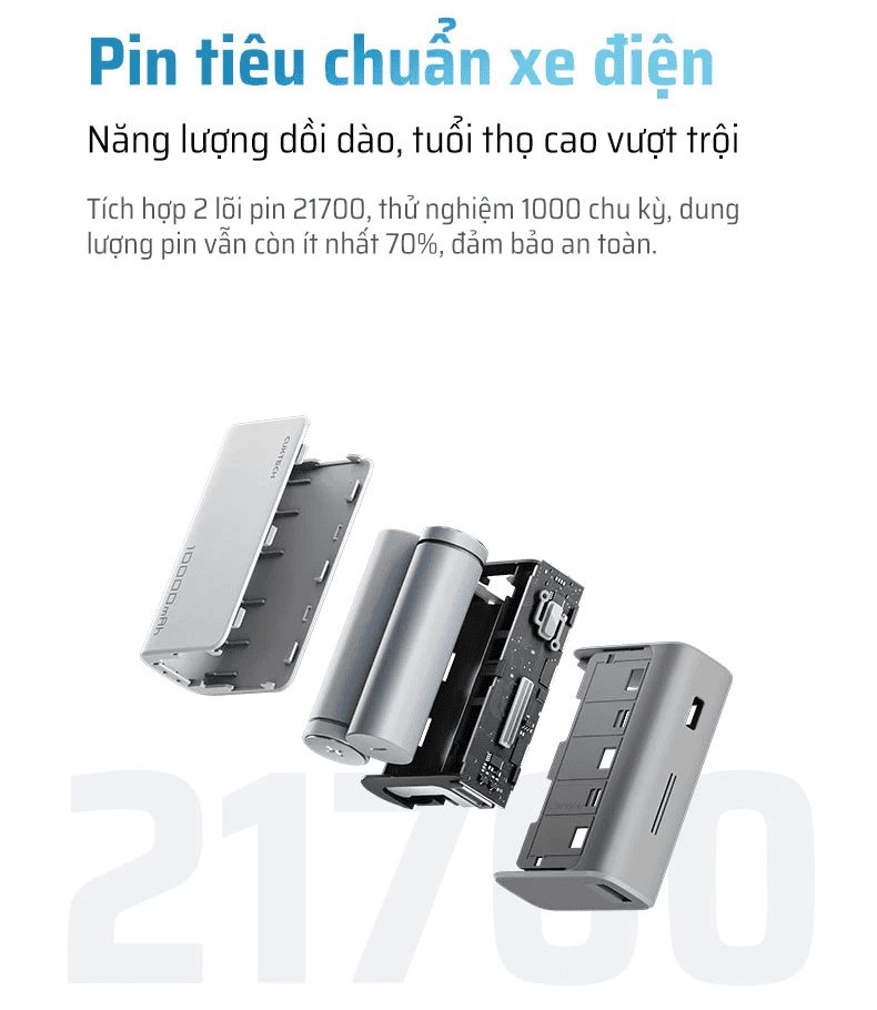 Với dung lượng 10000mAh, pin dự phòng này đủ để sạc iPhone khoảng 2–3 lần hoặc sạc đầy điện thoại Samsung 2 lần. Đây là mức dung lượng lý tưởng cho nhu cầu sử dụng di động hàng ngày, đảm bảo bạn luôn có nguồn năng lượng dự phòng khi cần. Ngoài ra, CUKTECH PB100 được tích hợp chip bảo vệ đa tầng, chống quá áp, quá nhiệt và quá dòng, giúp thiết bị và người dùng luôn an toàn trong suốt quá trình sạc.