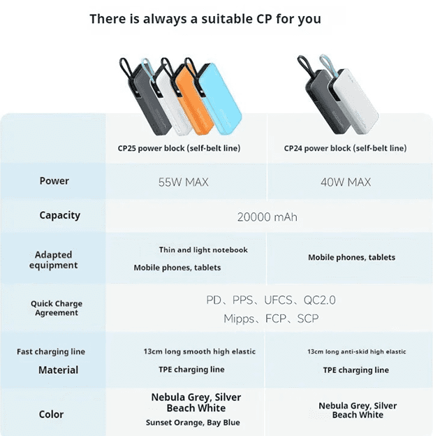 Không cần mang theo dây sạc rời, CUKTECH LPB200N được trang bị cáp sạc nhanh hai chiều gắn liền, giúp bạn dễ dàng sạc điện thoại hoặc nạp lại pin dự phòng mọi lúc mọi nơi. Thiết kế này vừa tiết kiệm không gian, vừa giảm rủi ro quên hoặc thất lạc phụ kiện, đặc biệt hữu ích cho những người thường xuyên di chuyển hoặc đi công tác.