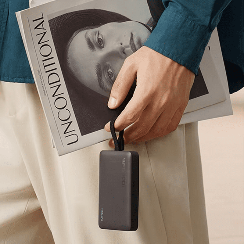 - Sạc nhanh khi đi công tác: Bạn đang ở sân bay hoặc khách sạn, chỉ cần áp Cuktech WPB100L lên điện thoại là có thể sạc mà không cần tìm ổ điện. Tích hợp cáp sẵn giúp bạn sạc cho laptop mini hoặc máy ảnh nhanh chóng.